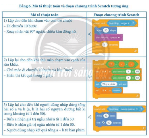 Bảng 6. Mô tả thuật toán và đoạn chương trình Scratch tương ứng