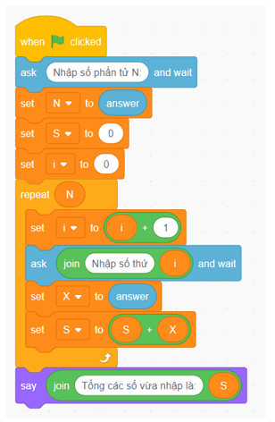 Vận dụng trang 94 Tin học 8: Hãy tạo chương trình Scratch thực hiện việc nhập chiều cao của các bạn trong tổ em, tính chiều cao trung bình của cả tổ và in kết quả ra màn hình.