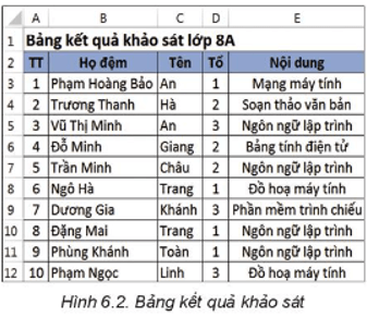Câu hỏi trang 28 Tin học 8: Em hãy nêu tiêu chí sắp xếp danh sách học sinh theo thứ tự của bảng chữ cái trong bảng kết quả ở Hình 6.2.