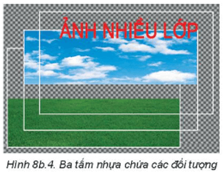 Câu 2 trang 58 Tin học 8: Nếu để lớp trên cùng (có dòng chữ “ẢNH NHIỀU LỚP”) vào giữa hai lớp còn lại, em sẽ nhìn thấy kết quả là gì?