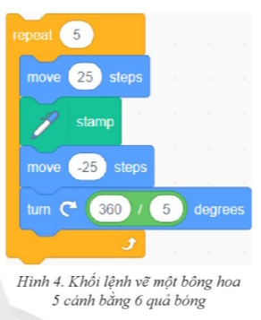 + Có thể xếp các quả bóng thành bông hoa bằng cách thực hiện khối lệnh như
