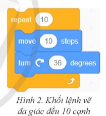 + Trước hết em cần tạo khối lệnh vẽ được một đa giác đều nhiều cạnh (tham khảo Hình 2)
