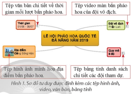 Theo em, tại sao cần đính kèm các tệp vào sơ đồ tư duy ở Hình 1?