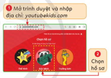- Em hãy mở trình duyệt youtubekids.com