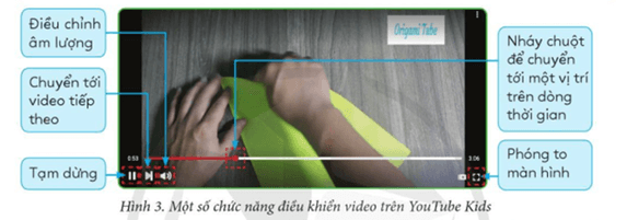 Hoạt động 2 trang 44 SGK Tin học lớp 5: Em hãy khám phá một số chức năng điều khiển video trên Youtube Kids (Hình 3).