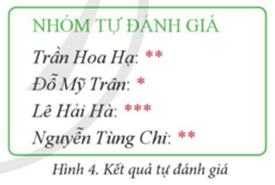 Vận dụng trang 35 SGK Tin học lớp 5: Nội dung văn bản ở Hình 4 thể hiện kết quả tự đánh giá việc thực hiện các nhiệm vụ học tập trên lớp của một nhóm các bạn. Số lượng dấu hoa thị “*” biểu thị mức độ đánh giá.