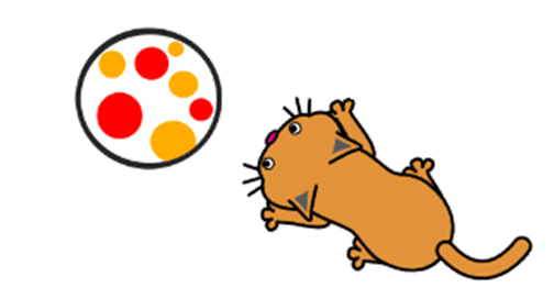 Vận dụng trang 69 SGK Tin học lớp 5: Em hãy tạo chương trình Mèo đuổi bóng (Hình 3). Khi chạy chương trình, Bóng di chuyển theo chuột máy tính còn Mèo đuổi Bóng.
