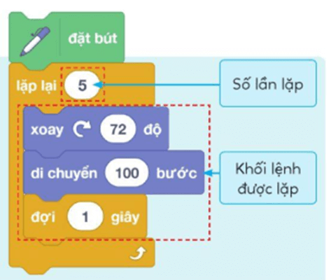 Nếu thay lệnh lặp lại 5 ở Hình 1 thành lệnh liên tục thì số lần thực hiện khối lệnh được lặp là vô hạn.