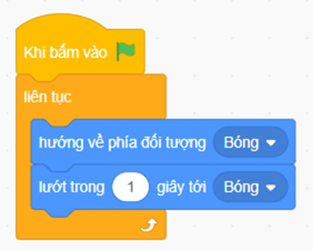 - Viết khối lệnh cho nhân vật Bóng như sau: