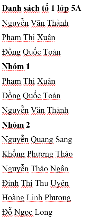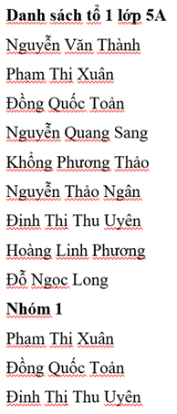 - Soạn thảo nội dung (có thể sử dụng danh sách các bạn trong tổ của em)