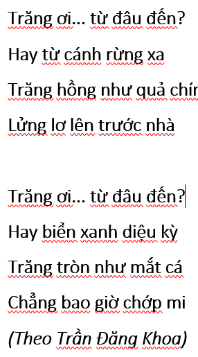 a) Soạn thảo, định dạng (thay đổi phông chữ, kiểu chữ in nghiêng, cỡ chữ, …) để có văn bản như ở Hình 8a. Khi soạn thảo, em cần thực hiện sao chép văn bản để không phải gõ lại những dòng có nội dung giống nhau.