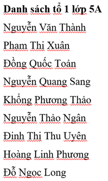 a) Soạn thảo, định dạng văn bản để được kết quả như ở Hình 2 (có thể sử dụng danh sách các bạn trong tổ của em).