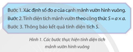 Khởi động trang 38 SGK Tin học lớp 5: Quan sát Hình 1 và cho biết có thể thay đổi thứ tự các bước mà vẫn thực hiện được việc tính diện tích mảnh vườn không.