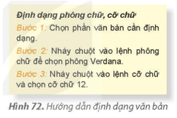 Khởi động trang 52 SGK Tin học lớp 5: Hình 72 là hướng dẫn các thao tác định dạng văn bản, em thực hiện lần lượt Bước 1, Bước 2, Bước 3, ... để được kết quả như yêu cầu.