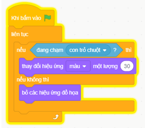 Nếu đang chạm vào con trỏ chuột thì thay đổi hiệu ứng màu một lượng là 3, tức là chuột đổi màu, nếu không thì bỏ hiệu ứng đồ họa, chuột quay về trạng thái ban đầu.