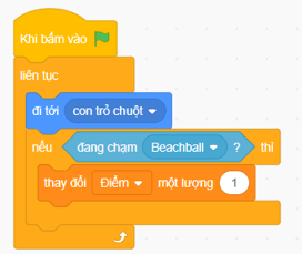 4. Khối lệnh cho nhân vật Beachball vẫn giữ nguyên