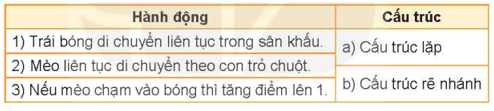 Câu hỏi 1 trang 79 SGK Tin học lớp 5: Em hãy ghép mỗi hành động của nhân vật ở cột bên trái với một cấu trúc phù hợp ở cột bên phải.