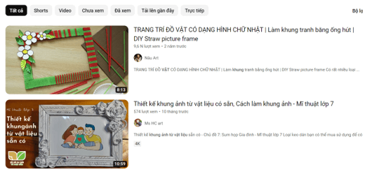 Sử dụng từ khóa “khung ảnh từ vật liệu tái chế”, em có thể tìm được các gợi ý video sau: