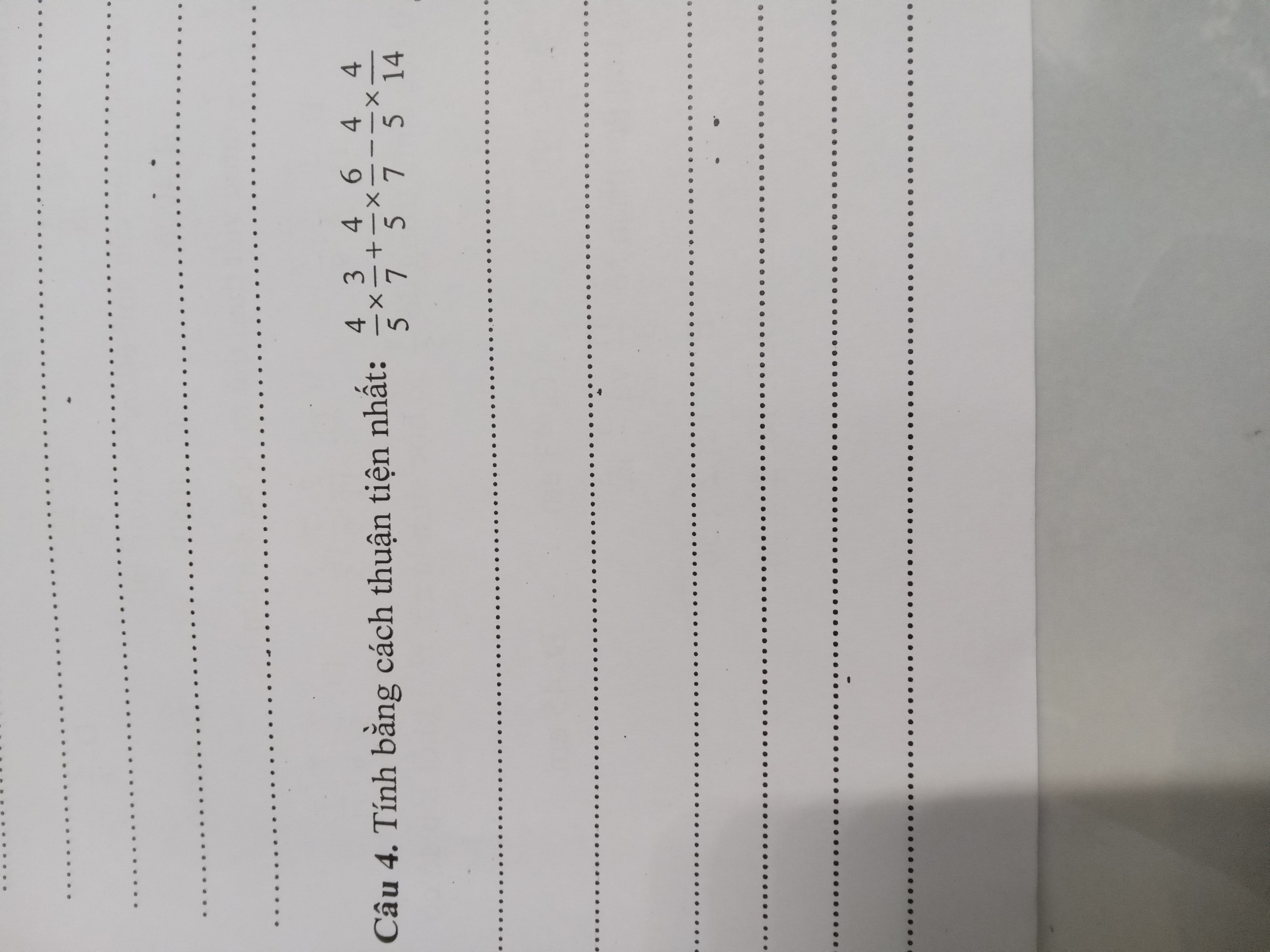 Tính bằng cách thuận tiện: 4/5 x 3/7 + 4/5 x 6/7 - 4/5 x 4/14