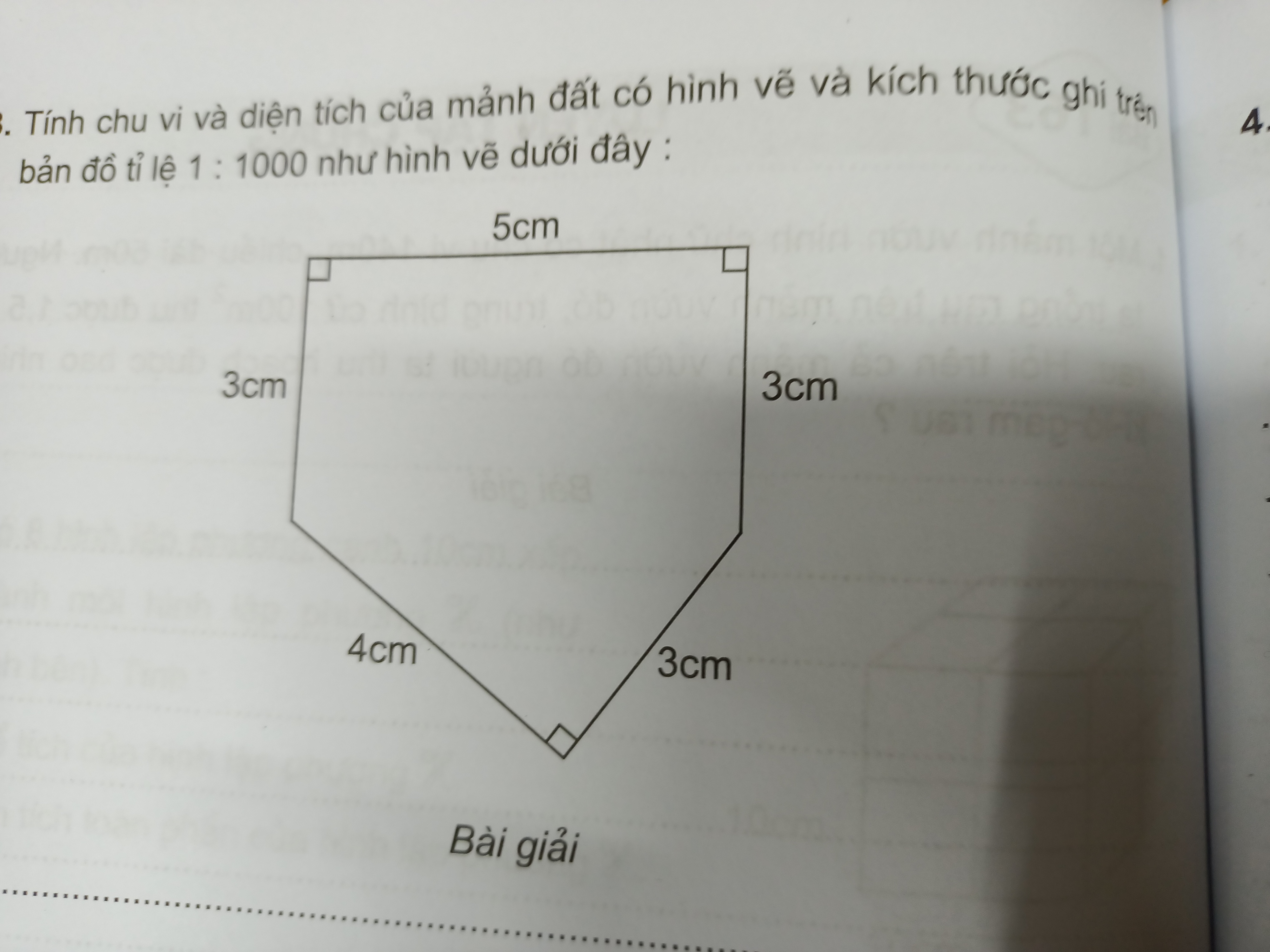 Tính chu vi và diện tích của mảnh đất có hình vẽ và kích thước ghi trên bản đồ