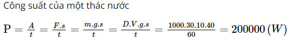 Tính công suất của một thác nước, biết rằng thác nước có độ cao 40m và cứ mỗi phút có 30m3 nước đổ xuống