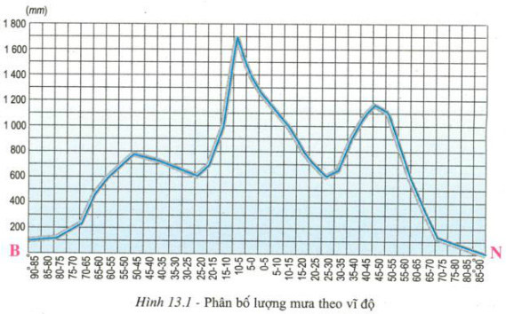 Dựa vào kiến thức đã học và hình 13.1, giải thích tình hình phân bố mưa ở các khu vực: xích đạo, chí tuyến, ôn đới, cực.