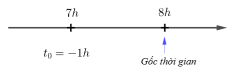Xe khởi hành lúc 7 giờ, chọn gốc thời gian lúc 8 giờ, suy ra