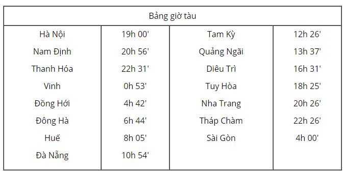 Dựa vào giờ tàu ở Bảng 1.1, hãy tính tốc độ trung bình của đoàn tàu trên đường Hà Nội – Sài Gòn, biết con đường này dài 1726 km coi như thẳng.: