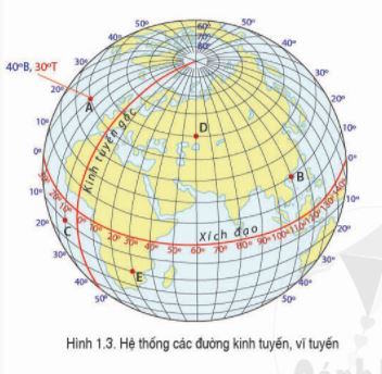 Ví dụ: Điểm A có toạ độ địa lí là A (40°B, 30°T) hoặc