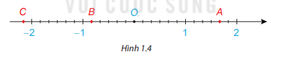 Mỗi điểm A,B,C trên trục số Hình 1.4 biểu diễn số hữu tỉ nào?