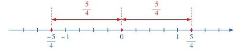 \(\frac{{ - 5}}{4}\) cách gốc 0 một khoảng bằng nhau.