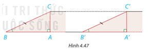 Hai tam giác vuông ABC (vuông tại đỉnh A) và A’B’C’ (vuông tại đỉnh A’) có các cặp cạnh góc vuông bằng nhau: AB = A'B', AC = A'C' (H.4.45). Dựa vào trường hợp bằng nhau cạnh - góc - cạnh của hai tam giác, hãy giải thích vì sao hai tam giác vuông ABC và ABC bằng nhau.