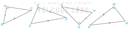 Hãy chỉ ra các cặp tam giác vuông bằng nhau dưới đây.