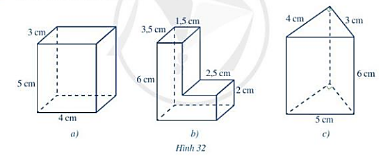 (iii) Tính thể tích của hình lăng trụ đứng tam giác, hình lăng trụ đứng tứ giác có ở Hình 32.