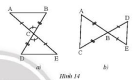 Hai tam giác trong mỗi hình bên (Hình 14a,b) có bằng nhau không? Vì sao?