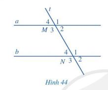 Quan sát hình 44, biết a // b.