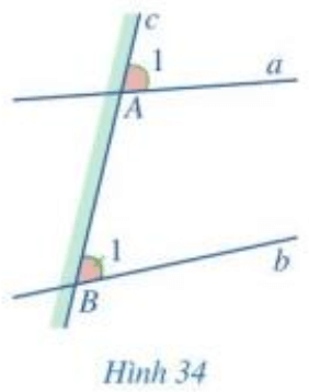 Ở Hình 34, đường thẳng c cắt hai đường thẳng a, b lần lượt tại điểm A, B.
