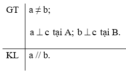 Ta viết giả thiết và kết luận như sau: