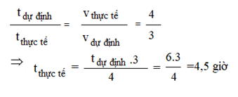 Một ô tô dự định đi từ A đến B trong 6 giờ. Nhưng thực tế ô tô đi với vận tốc gấp \frac{4}{3} vận tốc dự định. Tính thời gian ô tô đã đi.