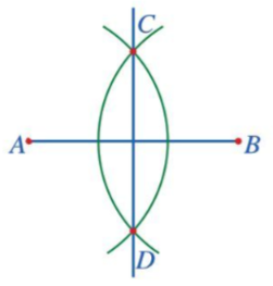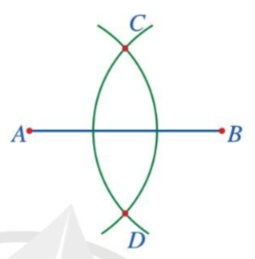 Ta có: đường thẳng CD là đường trung trực của đoạn thẳng AB. Nên CD đi qua trung điểm của AB và vuông góc với AB.