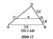 \(\frac{{3,6}}{{5,4}} = \frac{x}{{7,8}} \Rightarrow x = \frac{{3,6.7,8}}{{5,4}} = 5,2\).