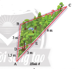 Hãy tìm các đoạn thẳng tỉ lệ trong hình vẽ sơ đồ một góc công viên ở Hình 4.