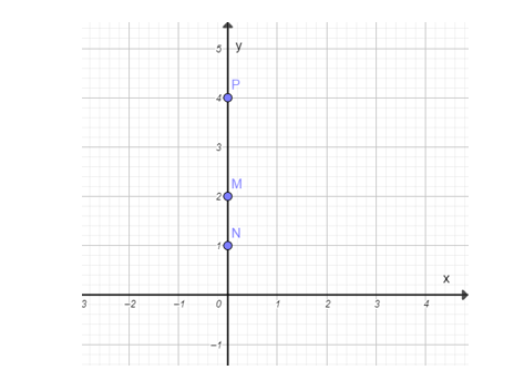 Xác định được các điểm M(0; −2), N(0; 1), P(0; 4) trên hệ trục tọa độ Oxy như sau: