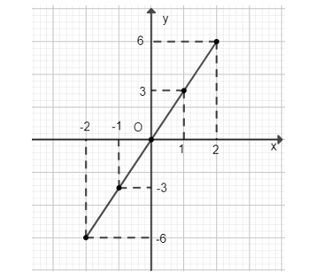 Đồ thị hàm số là tập hợp các điểm có tọa độ (−3; −6), (−1; −2), (1; 2), (2; 4) được vẽ trên mặt phẳng tọa độ như sau: