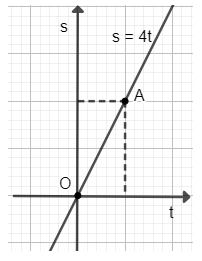 Đồ thị hàm số s = 4t là đường thẳng đi qua 2 điểm O(0; 0); A(1; 4).