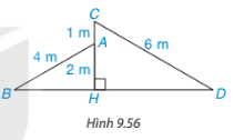 Một ngôi nhà với hai mái lệch AB, CD được thiết kế như Hình 9.56 sao cho CD=6m, AB=4m, HA=2m, AC=1m. Chứng tỏ
