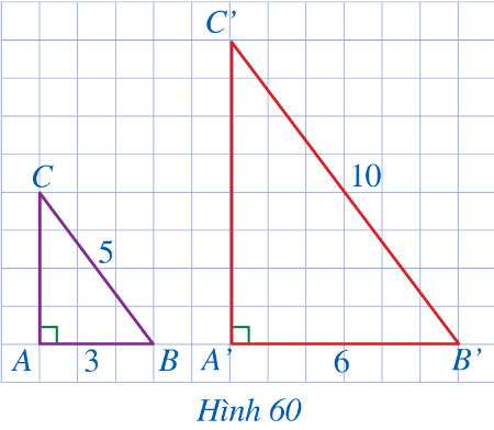 Cho hai tam giác ABC và A'B'C' lần lượt vuông tại A và A' (Hình 60) sao cho AB = 3, BC = 5, A'B' = 6, B'C' = 10.
