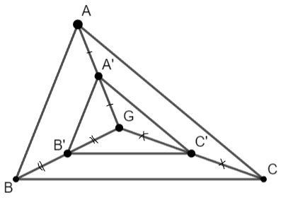 Chứng minh tương tự, ta có: A'C' và B'C' lần lượt là đường trung bình của ∆ACG, ∆BCG.