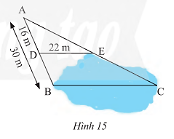Người ta ứng dụng hai tam giác đồng dạng để đo khoảng cách BC ở hai điểm không thể đến được (hình 15). Biết DE//BC.