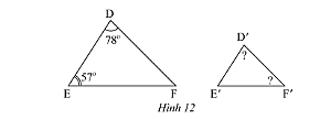 \(\widehat D = \widehat {D'} = 78^\circ ;\widehat F = \widehat {F'} = 45^\circ .\)